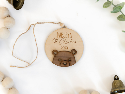 2.5" Woodland Baby's First Christmas Ornament Wooden Block