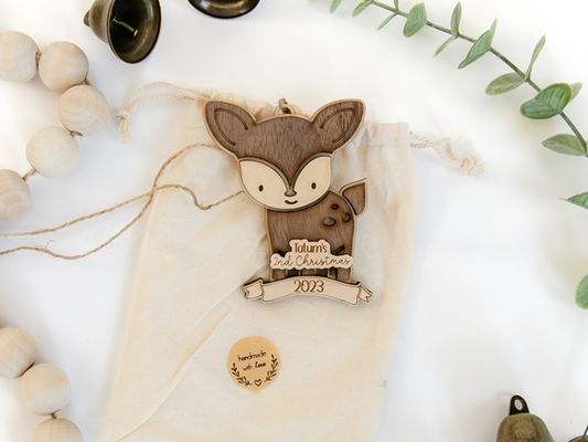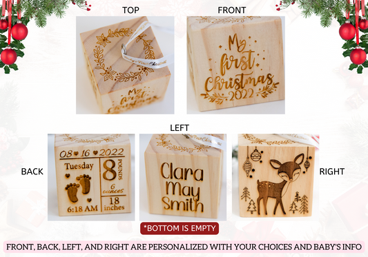 2.5" Woodland Baby's First Christmas Ornament Wooden Block