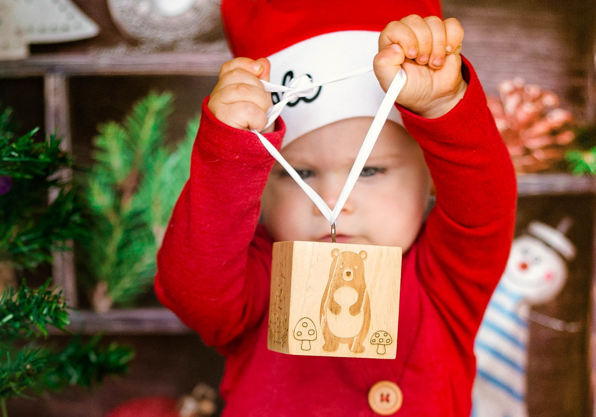 2.5" Woodland Baby's First Christmas Ornament Wooden Block