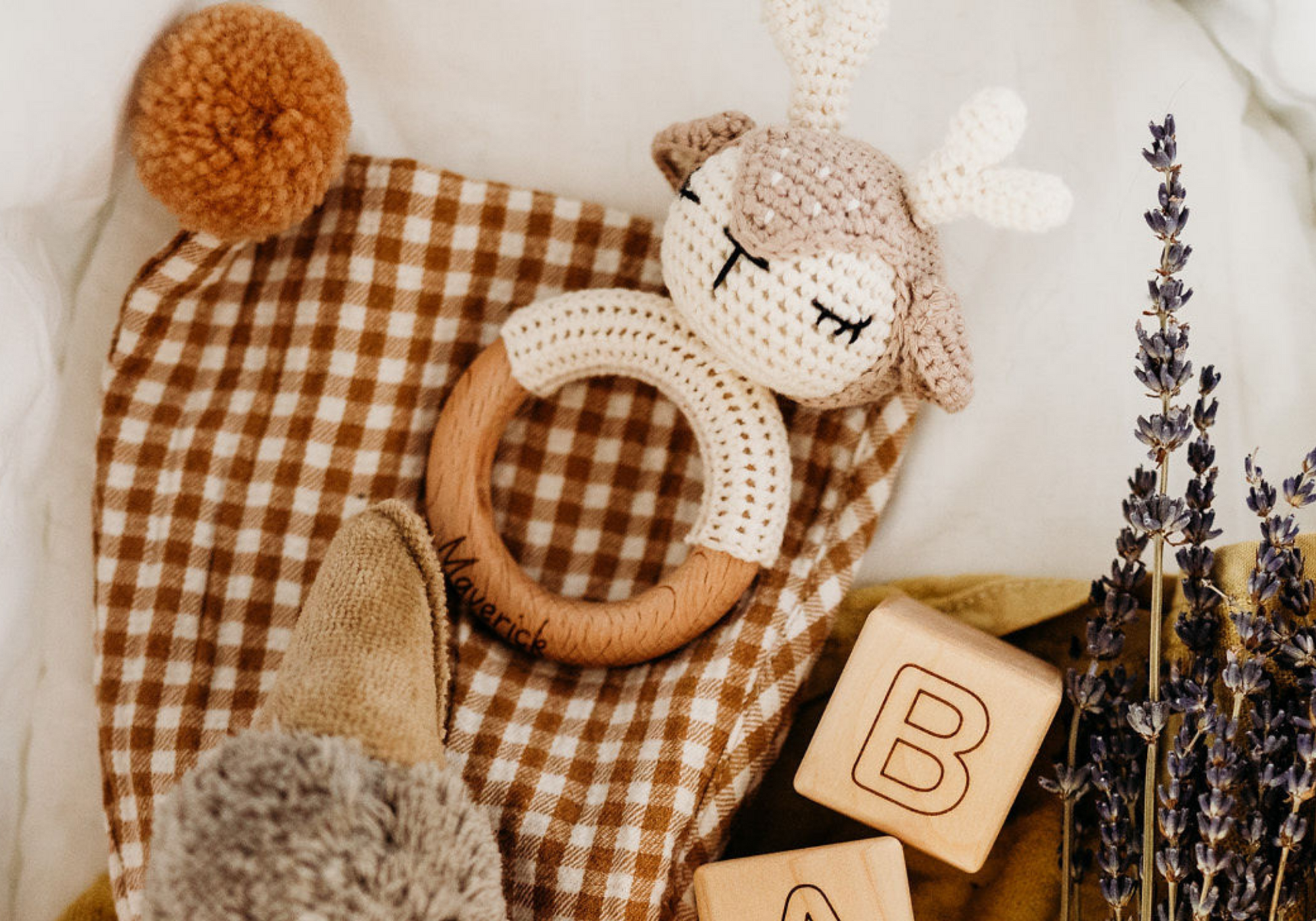 Adorable handmade crochet deer teether toy. Handled rattle specially designed for the little hands. Our Crochet Teether is soft and soothing for sore gums. The organic cotton fabric is gentle on the baby's face making it the ideal gift.