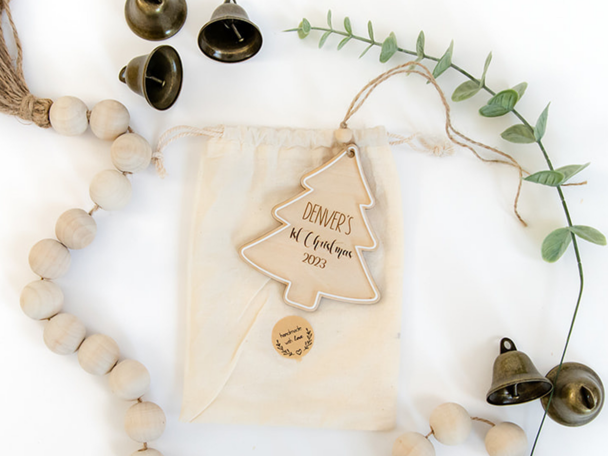 This Christmas, give your little one a gift that will always remind them of the magic of Christmas. Our little tree ornament is a unique gift that will make their day. It's handmade from wood and acrylic materials and personalized with your chosen name.