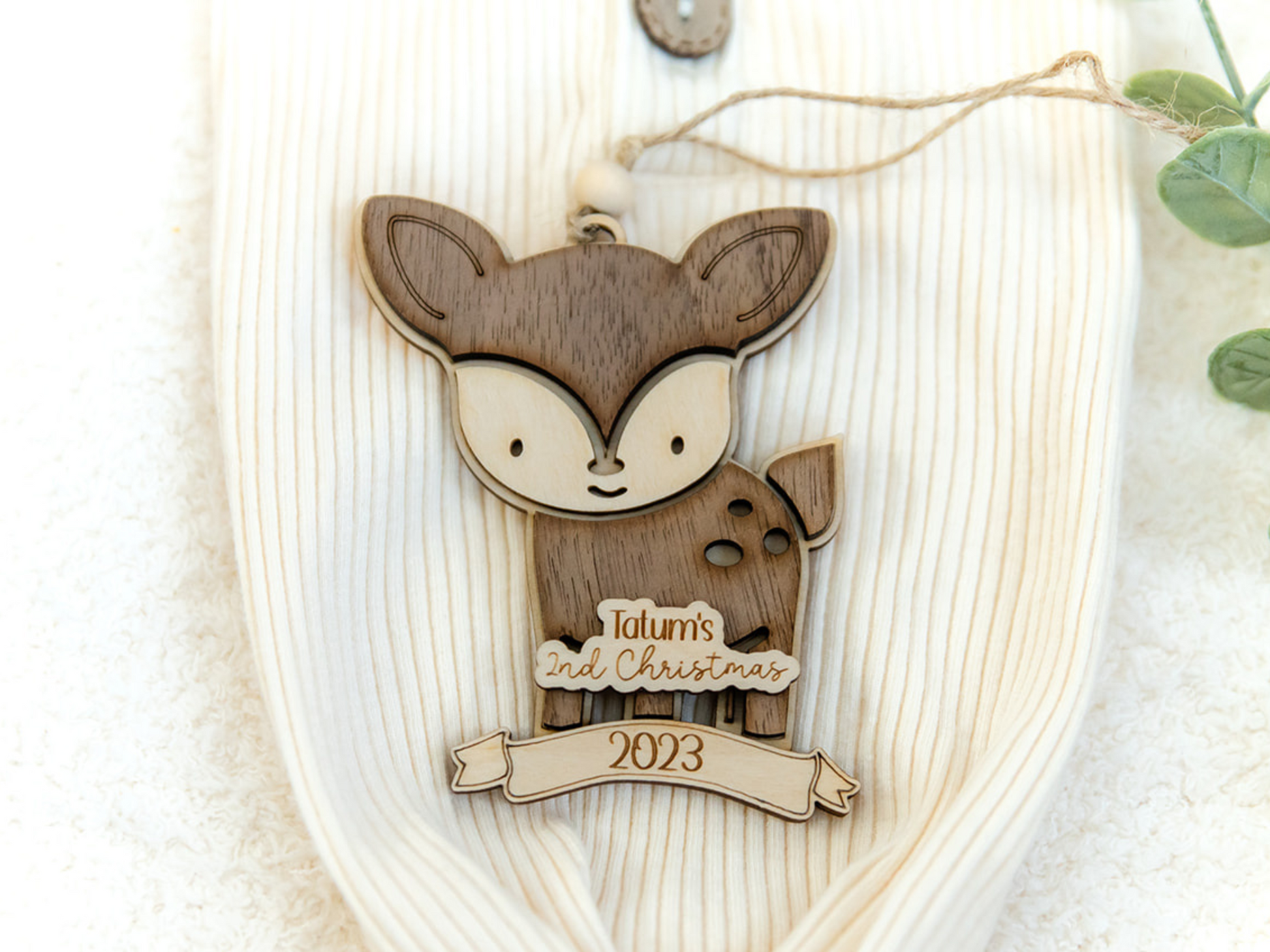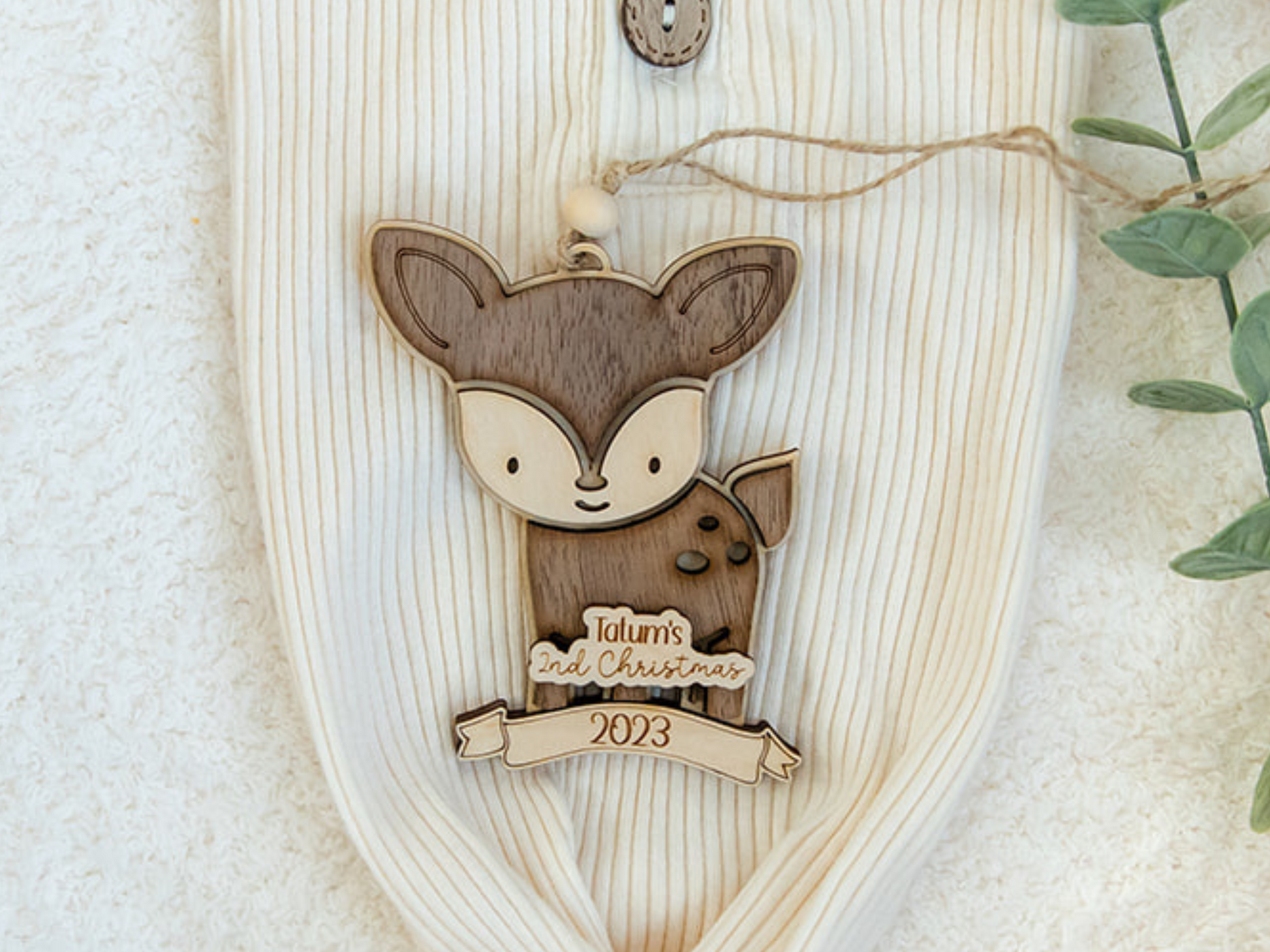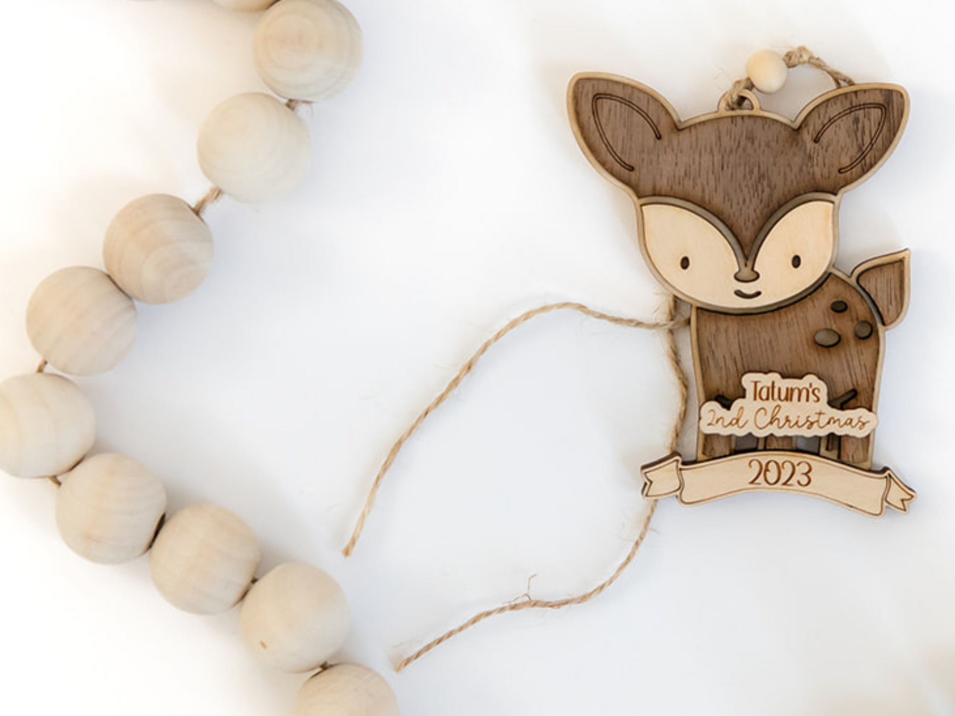 This Christmas, give your little one a gift that will always remind them of the magic of Christmas. Our little deer ornament is a unique gift that will make their day. It's handmade from wood and is personalized with the name of your choosing.