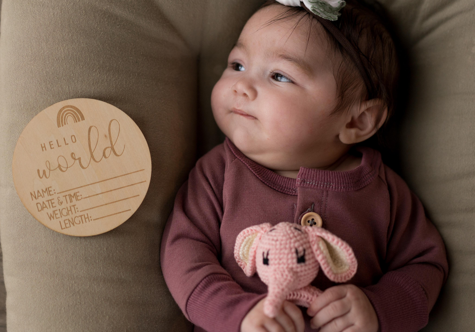 3- A wooden baby's birth stats announcement, a perfect keepsake to remember the baby's special day.