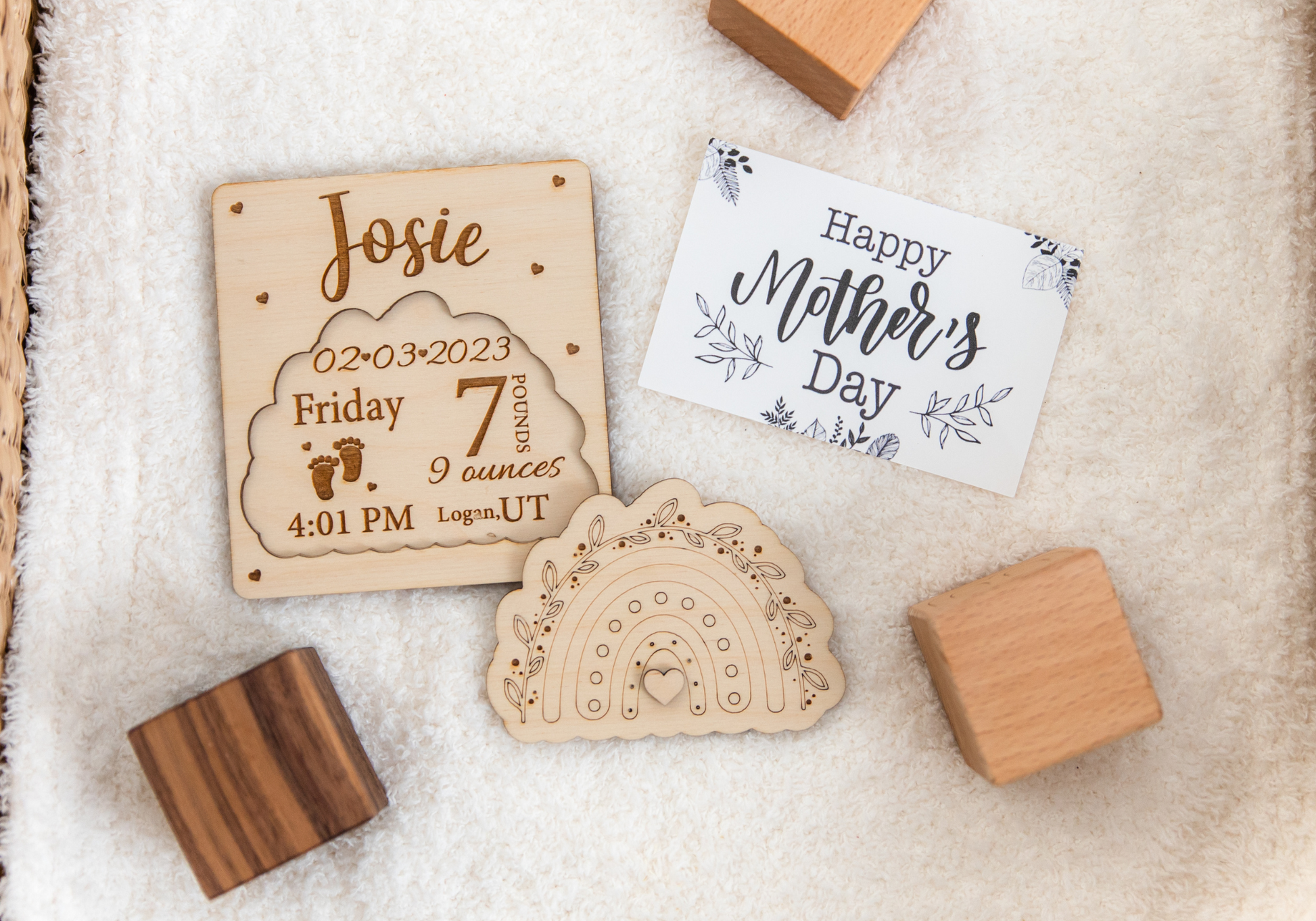 Crafted from high-quality, durable wood, this keepsake is sure to last for years to come. It's a great way to commemorate the birth of a new family member and makes a thoughtful and unique gift for new moms and parents. Measures: 4.8''Lx4.3''W.